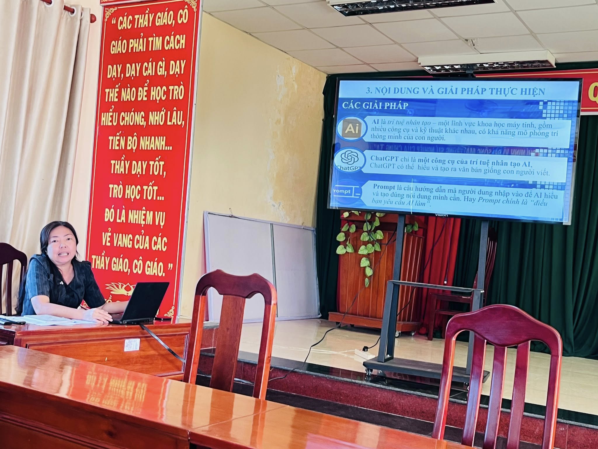 Buổi sinh hoạt chuyên đề diễn ra nghiêm túc, hiệu quả, nhận được sự quan tâm và trao đổi tích cực của đội ngũ giáo viên. Qua đó, giáo viên được trang bị thêm kiến thức, kỹ năng ứng dụng công nghệ số và trí tuệ nhân tạo trong dạy học, góp phần thực hiện tốt nhiệm vụ chuyển đổi số và nâng cao chất lượng giáo dục của nhà trường.